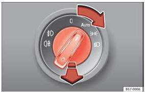 das luzes.Ligar a luz de nevoeiro traseira (veículos com faróis de nevoeiro dianteiros)